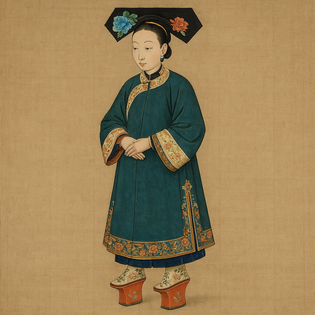 During the Qing Dynasty (1644–1912), noble Manchu women wore “flower pot shoes”, which were platform shoes raised by a thick central heel (Evans, 2018). These shoes, often embroidered and ornately decorated, symbolized elite status and femininity. Unlike European high heels, they were worn primarily for aesthetic and cultural reasons rather than power.